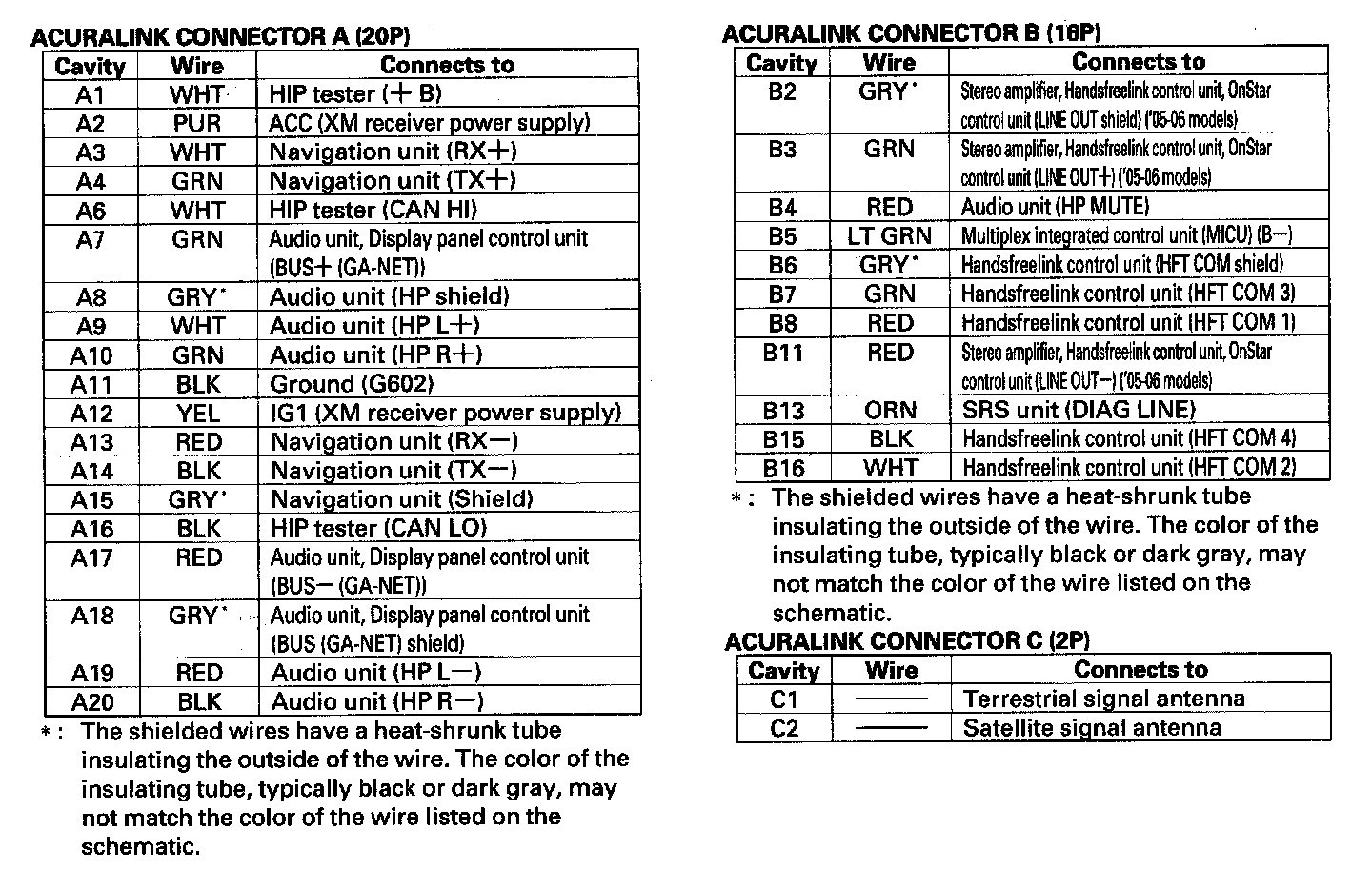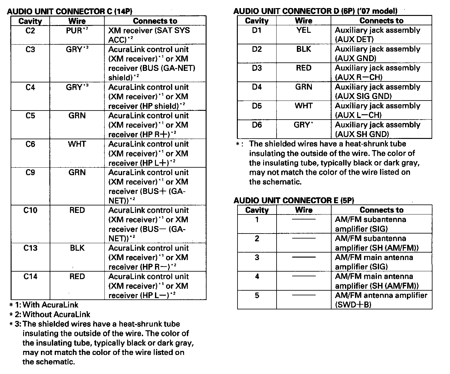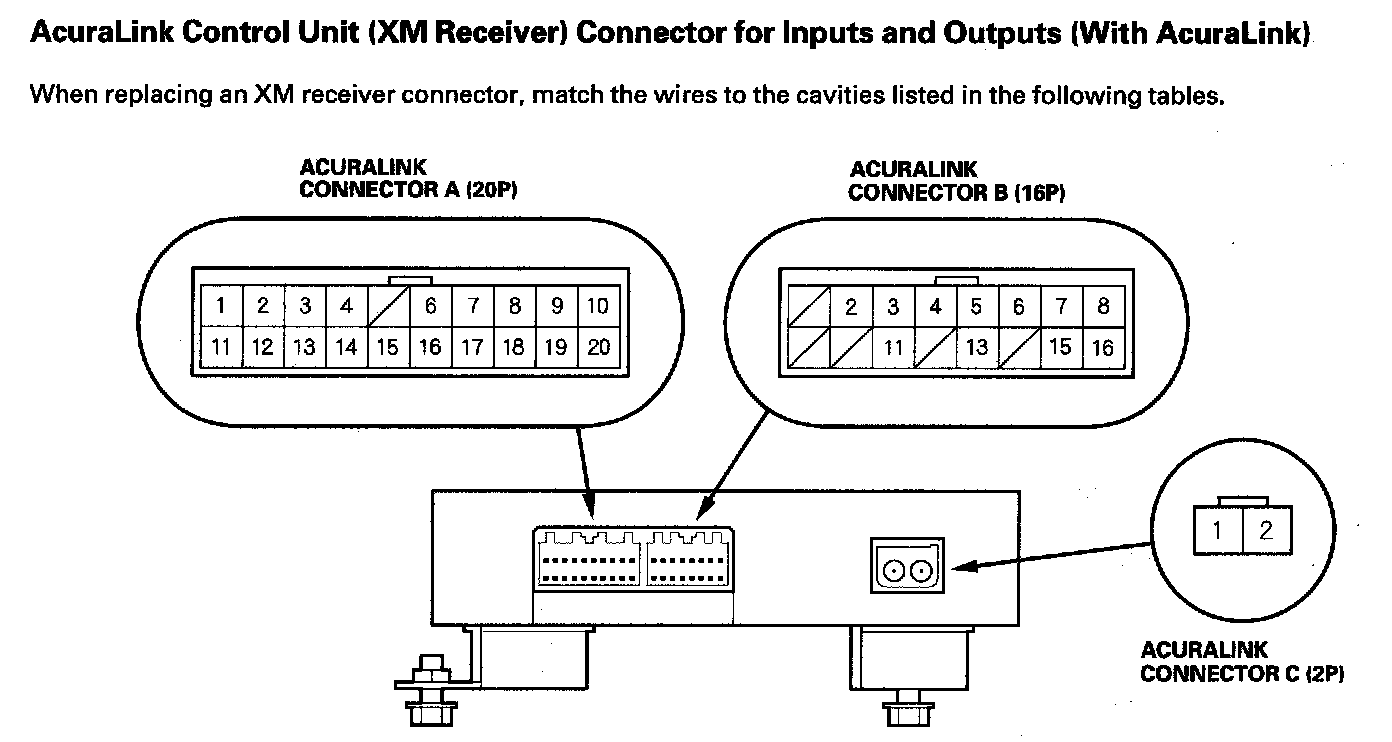 AcuraLink Control Unit (XM Receiver) Connector For Inputs And Outputs (With AcuraLink) Part 2: