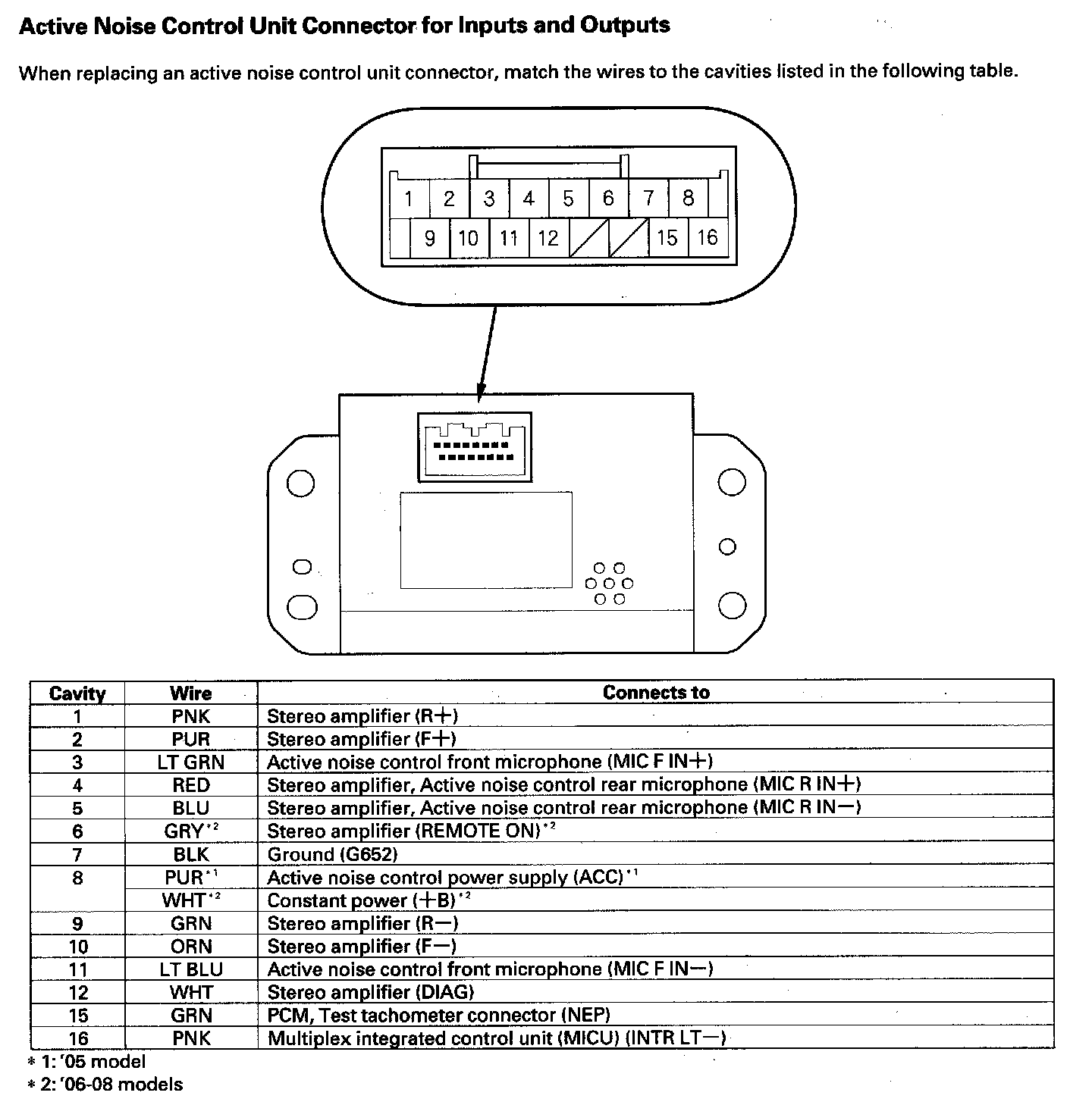 AcuraLink Control Unit (XM Receiver) Connector For Inputs And Outputs (With AcuraLink) Part 1:
