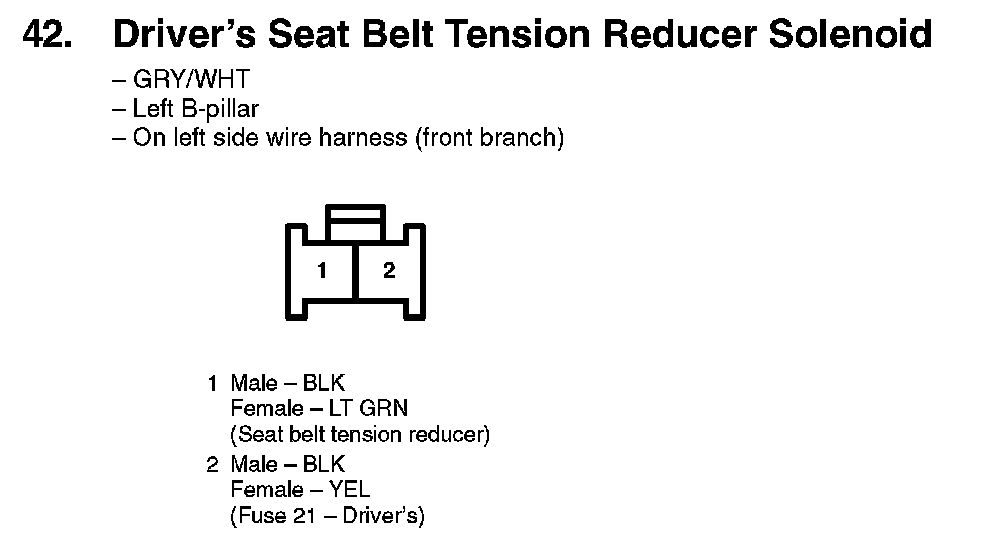 42. Driver's Seat Belt Tension Reducer Solenoid: