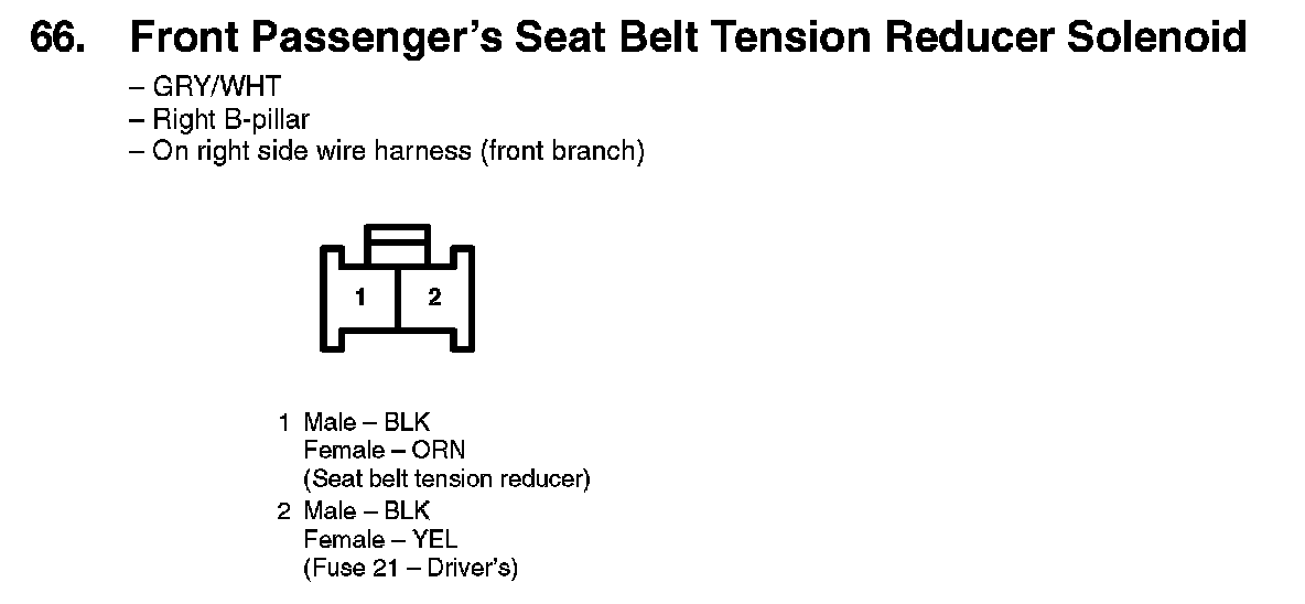 66. Front Passenger's Seat Belt Tension Reducer Solenoid: