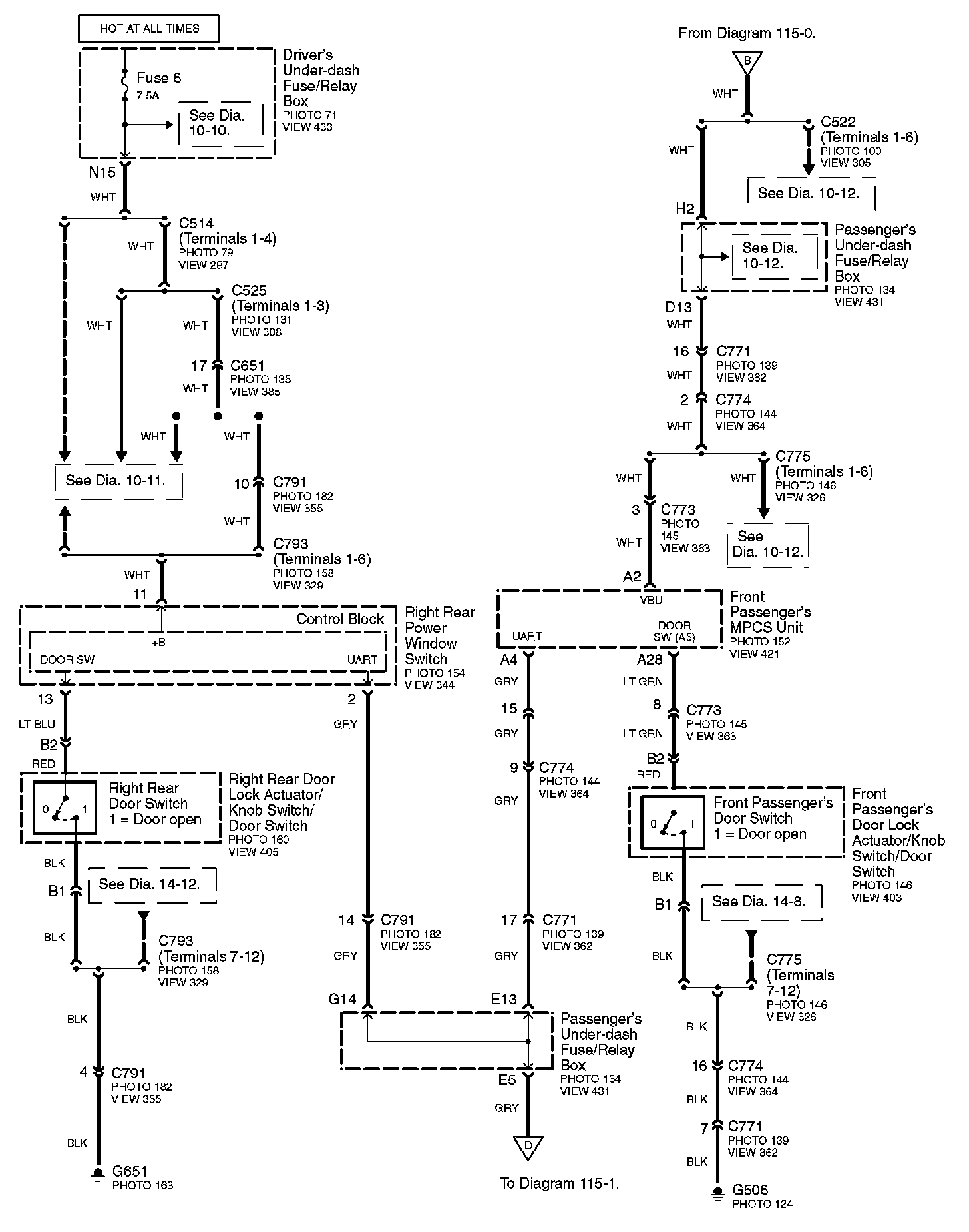 Connector Views: Connector terminal views (references to VIEWS) referred to within these diagrams can be found at Connector Views by View Number. Connector Views By View Number