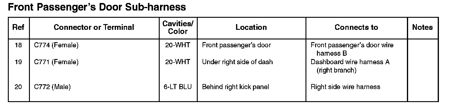 Front Passenger's Door Sub-harness: