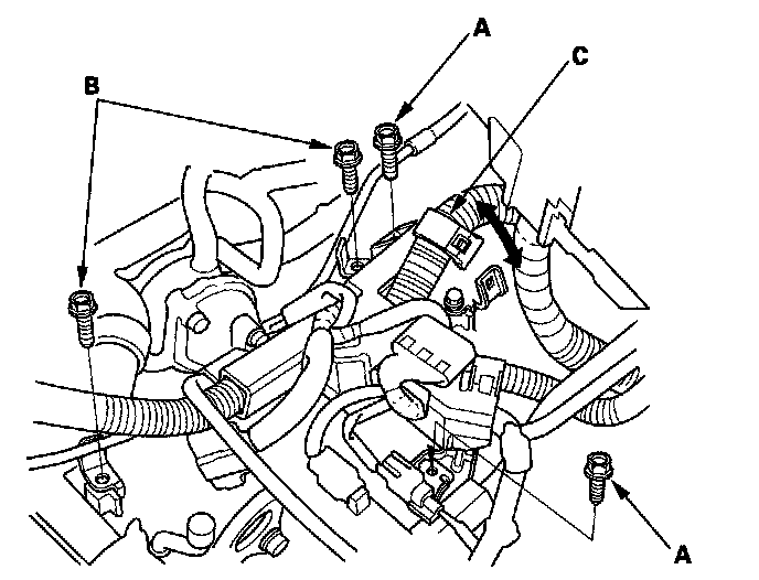 20. Remove the harness clamp (C).