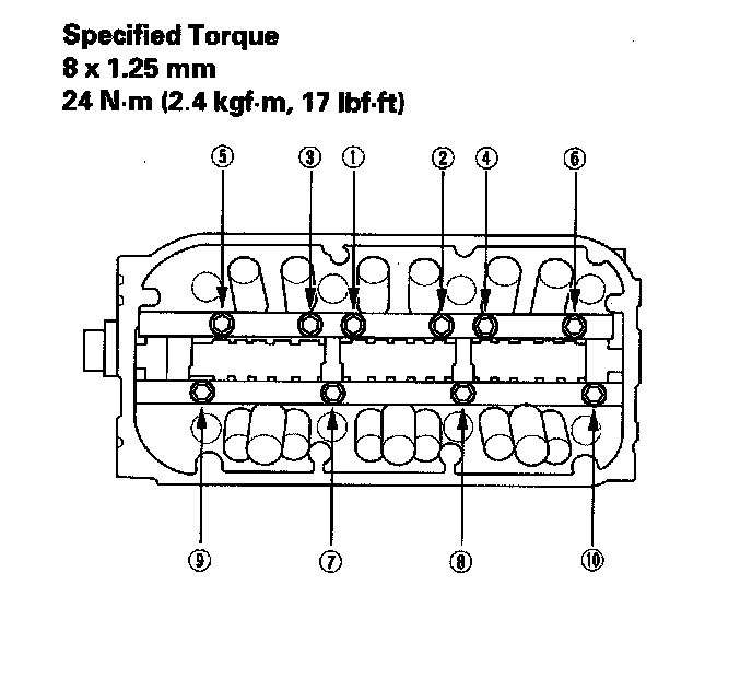 3. Put the rocker shafts on the cylinder head, then tighten the bolts to the specified torque.