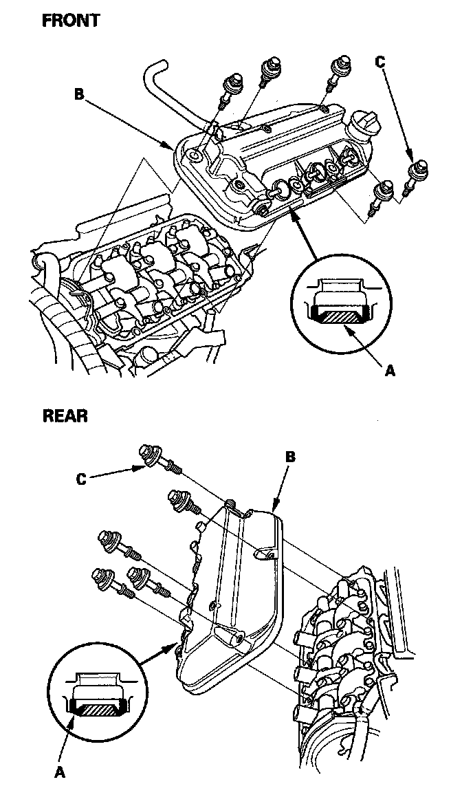 5. Inspect the cover washers (C). Replace any washer that is damaged or deteriorated.