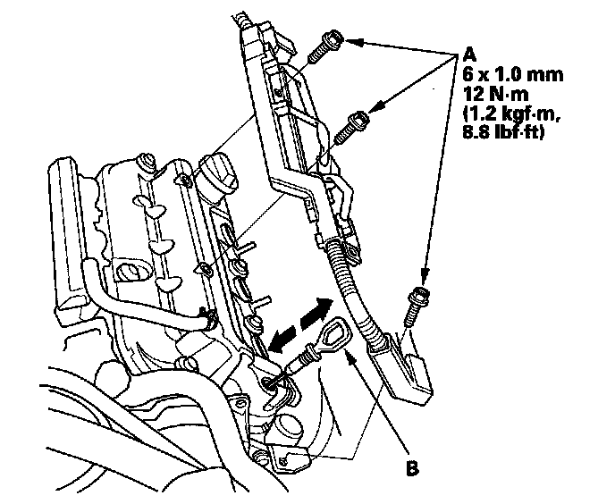 8. Tighten the two bolts (B) securing the harness holder.