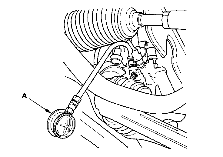 1. Remove the oil pressure switch, then install an oil pressure gauge (A).