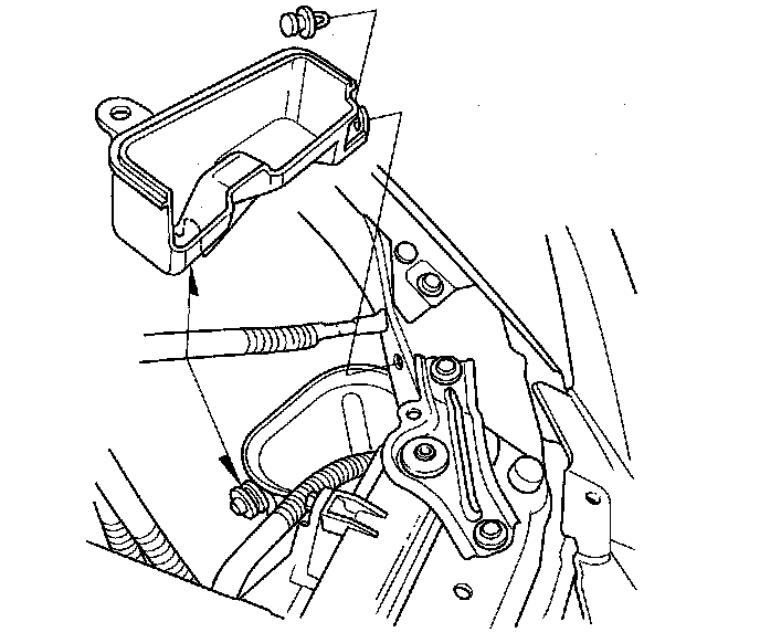 14. Remove the battery cable (A) from the under-hood fuse/relay box.