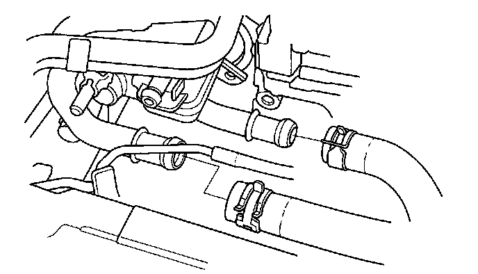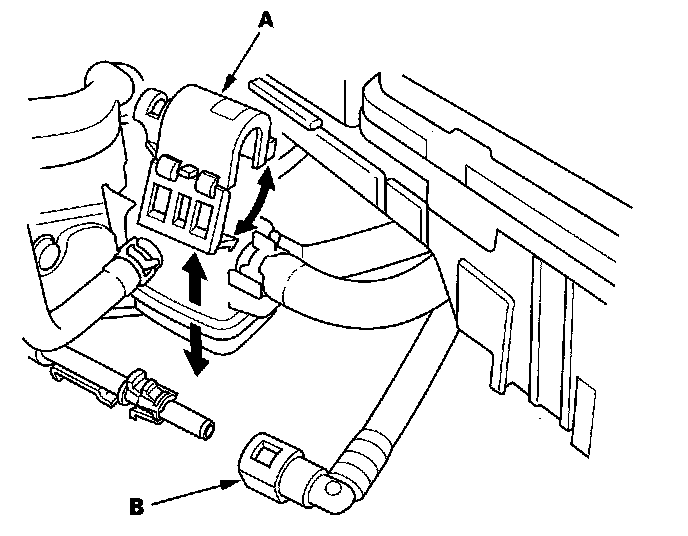 20. Disconnect the brake booster vacuum hose (A) and evaporative emission (EVAP) canister hose (B).