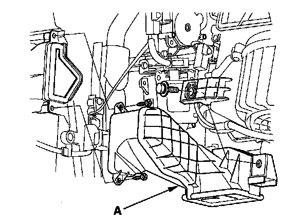2. Remove the self-tapping screws, bolt, and the duct (A).