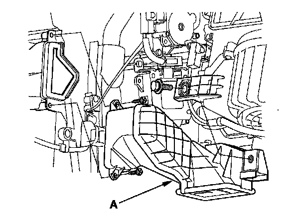 2. Remove the self-tapping screws, bolt, and the duct (A).