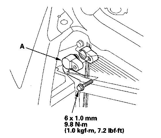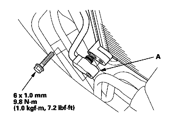 6. Remove the bolt, then disconnect the receiver line (A) from the A/C condenser.