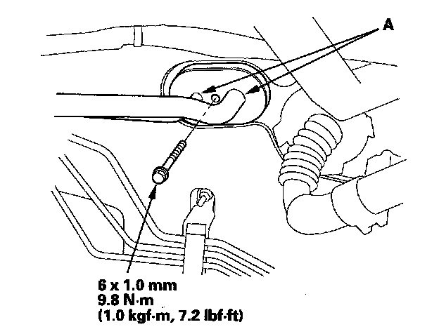 3. Remove the bolt, then disconnect the A/C lines (A) from the evaporator core.