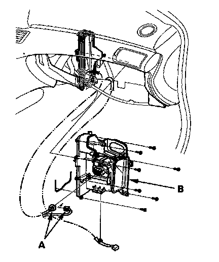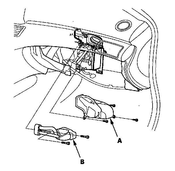 7. Carefully pull out the evaporator core (A) and the plate (B).