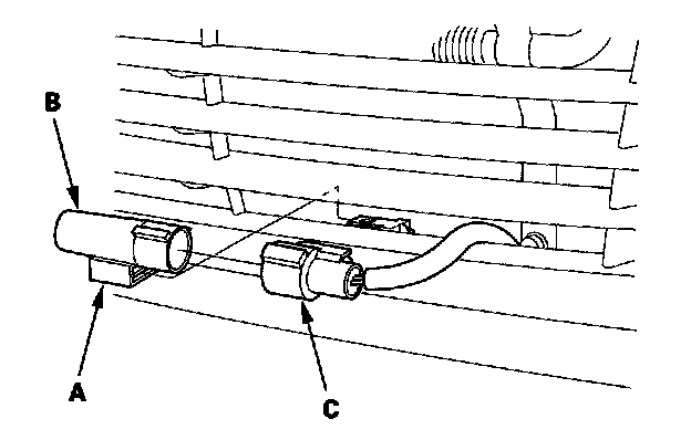 Outside Air Temperature Sensor Replacement1. Lift the tab (A) to release the lock, then remove the outside air temperature sensor (B) from the back of the front bumper. Disconnect the 2P connector (C) from the outside air temperature sensor.
