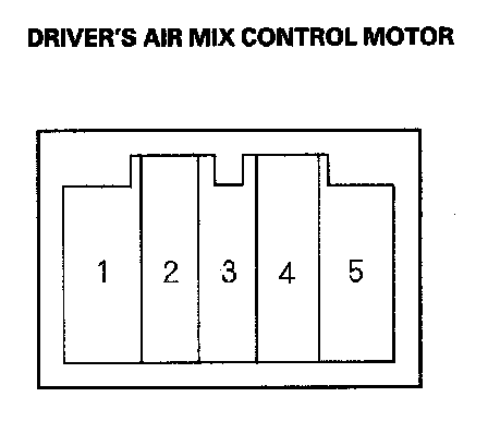 2. Connect battery power to the No. 1 terminal of the driver's air mix control motor, and ground the No. 2 terminal; the driver's air mix control motor should run, and stop at Max Cool. If it doesn't, reverse the connections; the driver's air mix control motor should run, and stop at Max Hot.