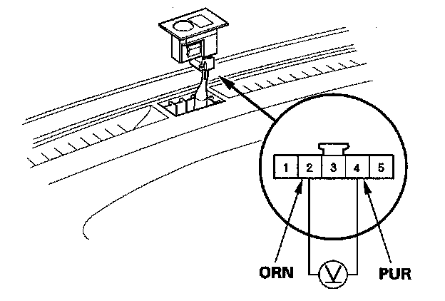 3. Turn the ignition switch ON (II). Measure the voltage between the terminals with the (+) probe on the No. 4 terminal and the (-) probe on the No. 2 terminal with the 4P connector connected.