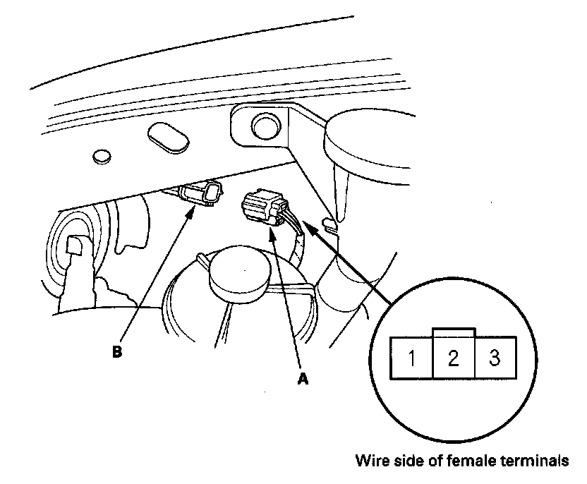 2. Disconnect the 3P connector (A) from the headlight leveling motor (B).