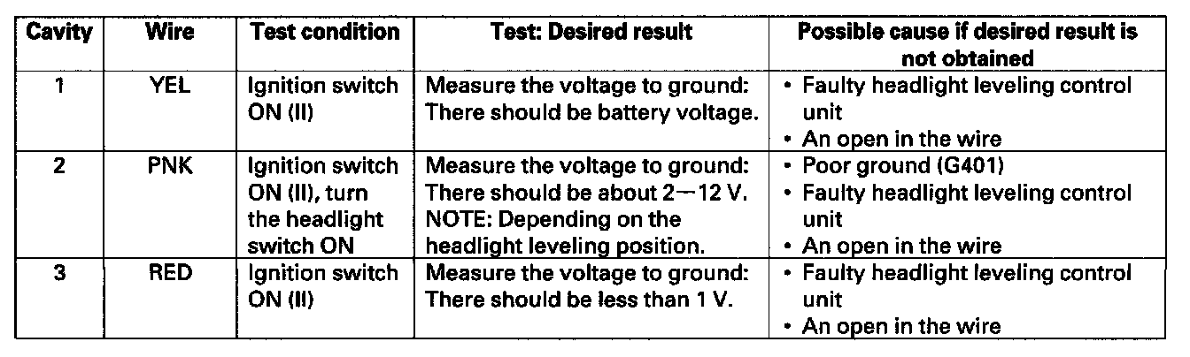 Headlight Leveling Motor Input Test1. Turn the ignition switch OFF.