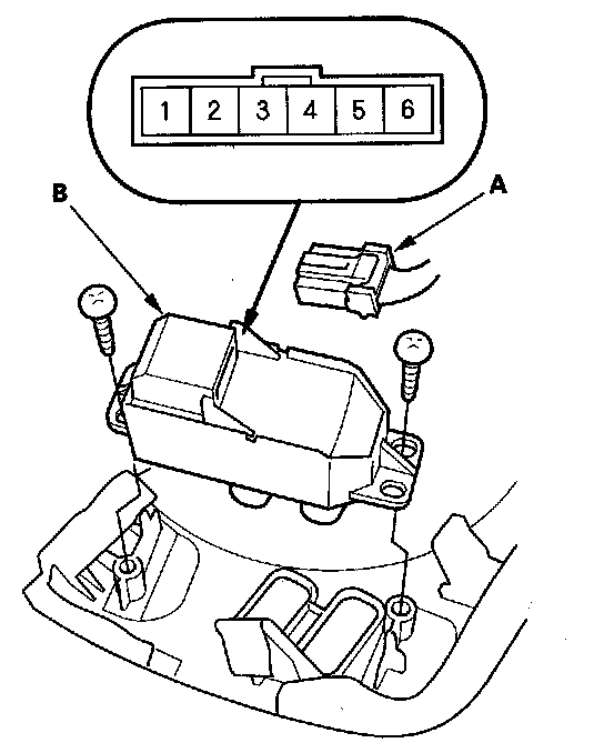 2. Disconnect the 6P connector (A) from the dash lights brightness controller (B).