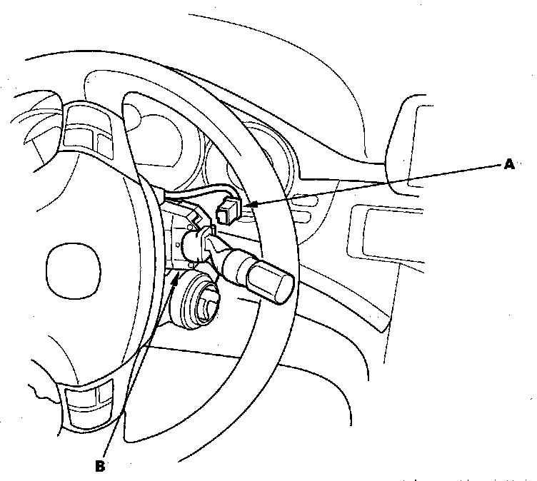 3. Disconnect the combination light switch 12P connector (A) from the wiper/washer switch (B).