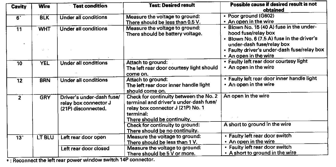 Left Rear Power Window Switch Input Test1. Turn the ignition switch OFF.