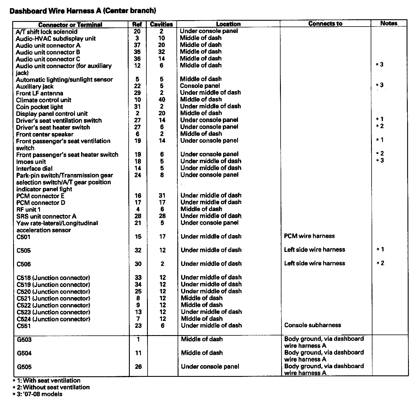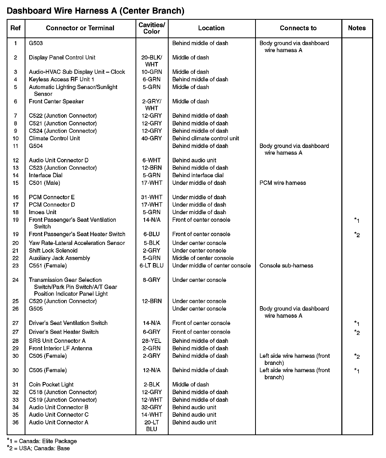 Dashboard Wire Harness A (Center Branch):