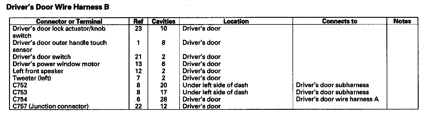 Driver's Door Wire Harness B: