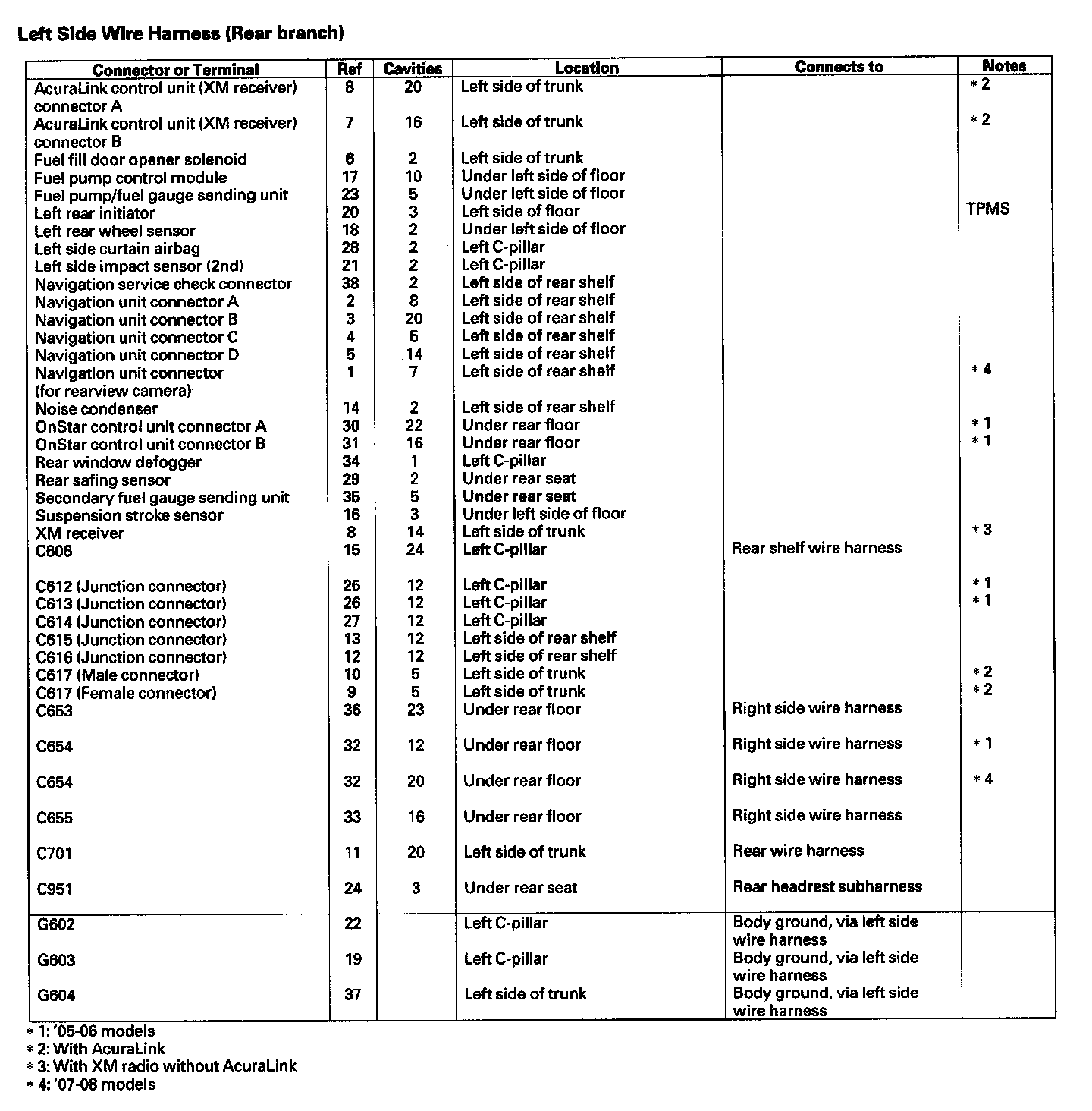 Left Side Wire Harness (Rear Branch):