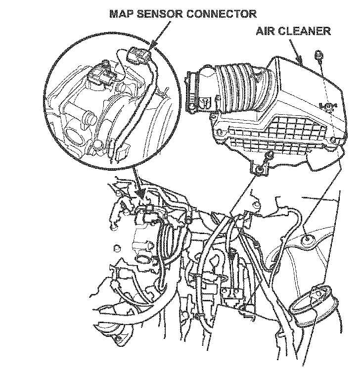 8. Remove the air cleaner by loosening the intake air duct clamp and removing the two bolts.