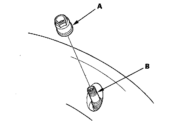 6. Remove and discard the valve stem nut (A), then remove the tire pressure sensor and valve stem (B) from the wheel.