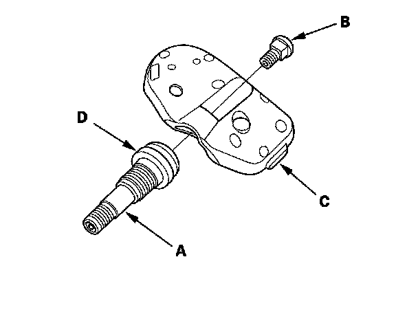 4. Tighten the valve nut to the specified torque while holding the tire pressure sensor toward (D) the wheel. You may hear a snap or pop as you tighten the nut. This is normal.