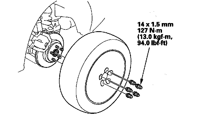 ^ Before installing the wheel, clean the mating surfaces of the brake disc/drum and the inside of the wheel.