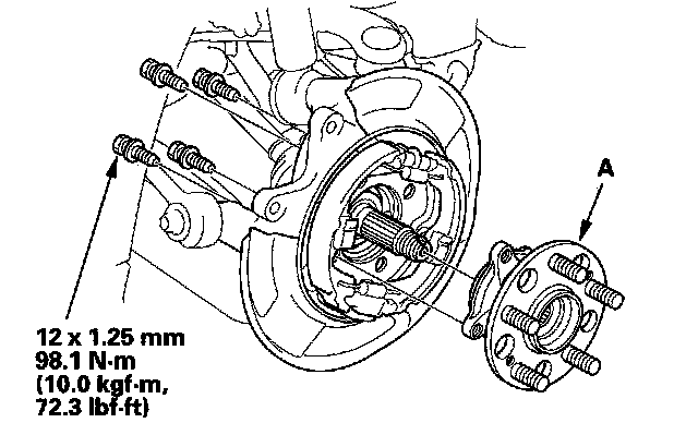 8. Remove the hub bearing unit (A).