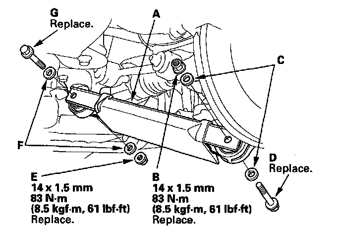 NOTE: Use new lower arm A mounting nuts and new bolts during reassembly.
