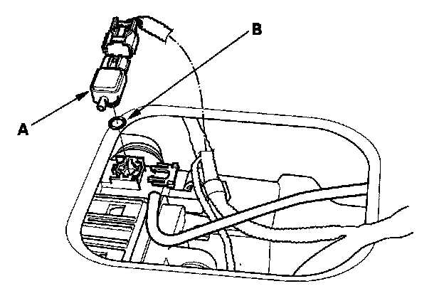 Install the parts in the reverse order of removal with a new O-ring (B).
