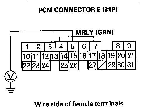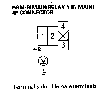 27. Check for continuity between body ground and PGM-FI main relay 1 (FI MAIN) 4P connector terminals No. 1 and No. 3 individually.