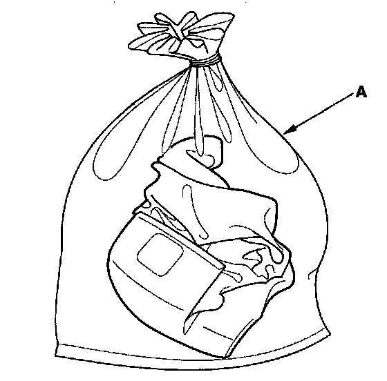 12. Dispose of the complete airbag. No part of it can be reused. Place it in a sturdy plastic bag (A), and seal it securely. Dispose of the deployed airbag according to your local regulations.
