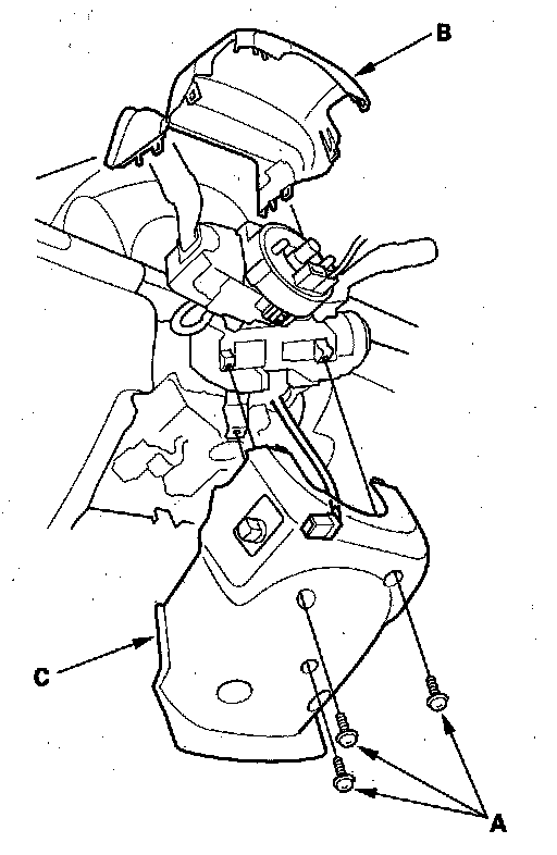 7. Remove the column cover screws (A), then remove the column covers (B, C).