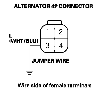 14. Connect alternator 4P connector terminal No. 3 and body ground with a jumper wire.