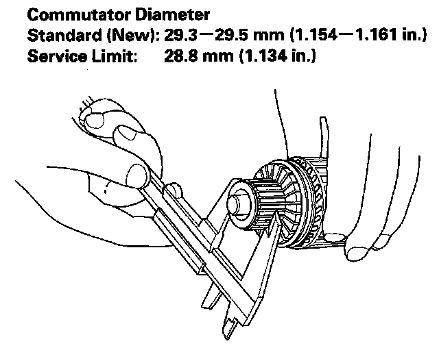8. Check the commutator diameter. If the diameter is out of the service limit, replace the armature.