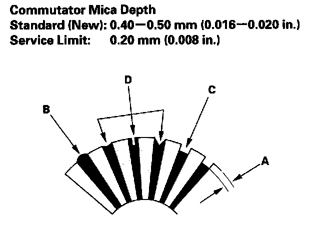- If the commutator runout is within the service limit, check the commutator for carbon dust or brass chips between the segments.