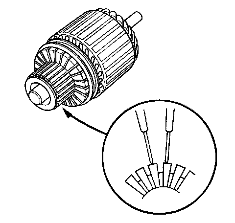 11. Check for continuity between the segments of the commutator. If there is an open circuit between any segments, replace the armature.