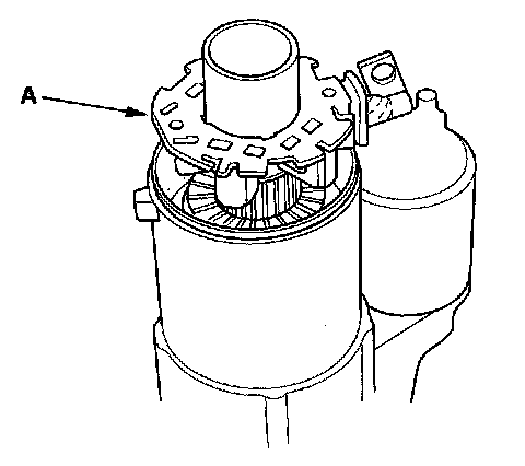 21. Place the brush holder assembly on the armature, then move the brush holder (A) down to the armature.