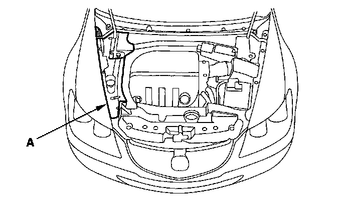 2. Remove the right upper fender trim (A).