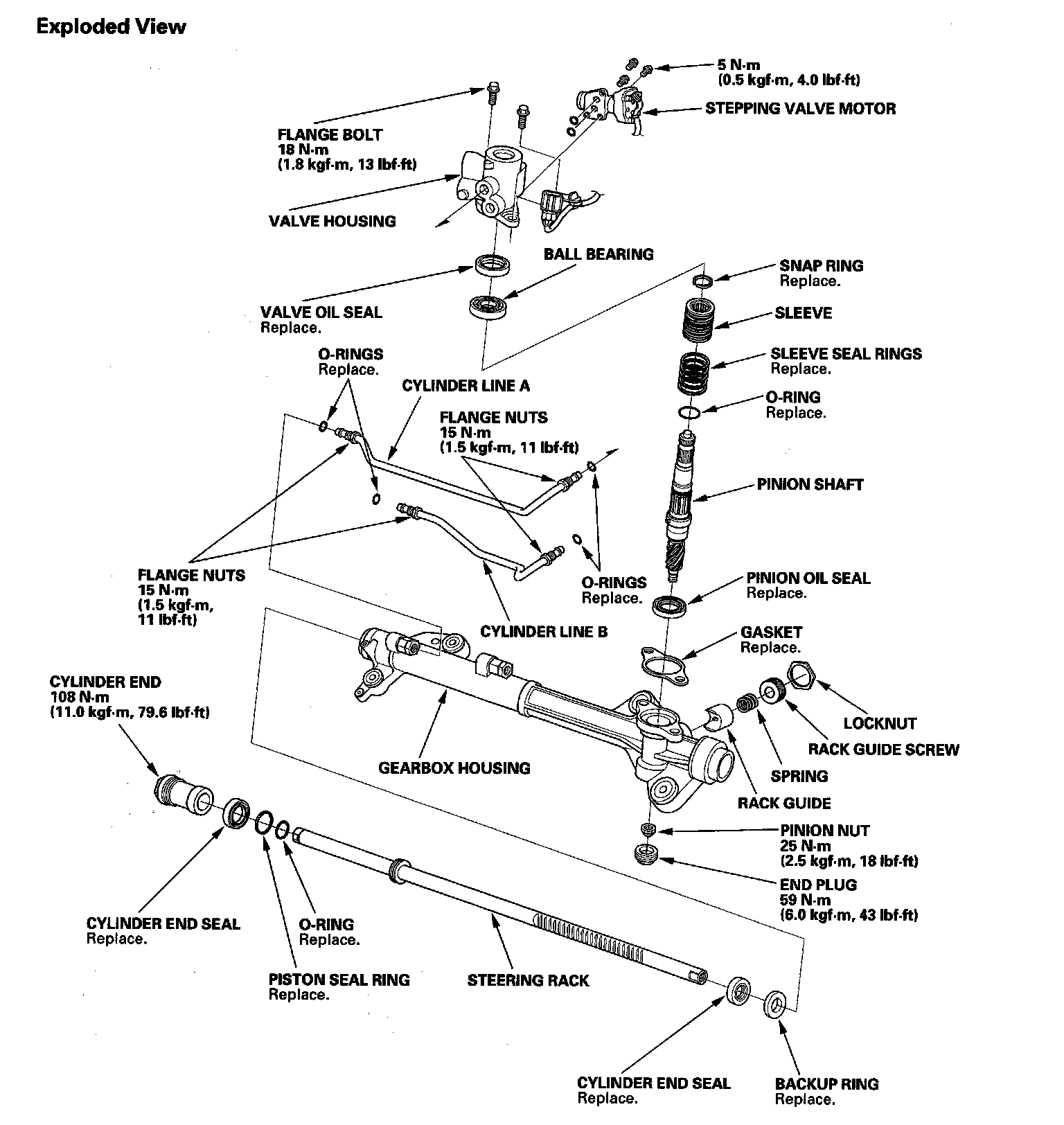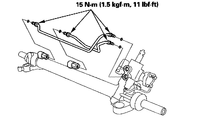 9. Drain the fluid from the cylinder fittings by slowly moving the steering rack back and forth.