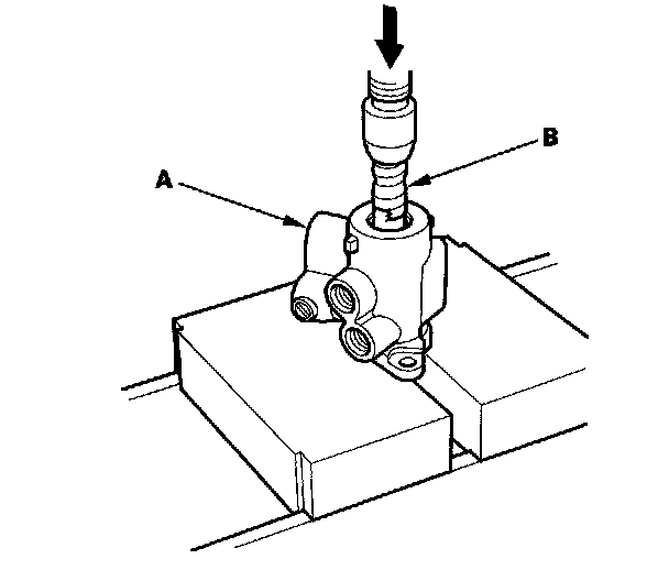 29. Press the valve oil seal (A) and ball bearing (B) out of the valve housing using a hydraulic press, driver and attachment, 24 x 26 mm.