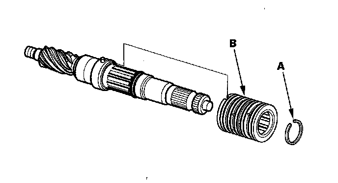 26. Remove the snap ring (A) and sleeve (B) from the pinion shaft.