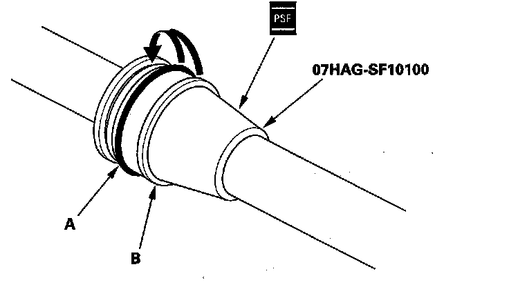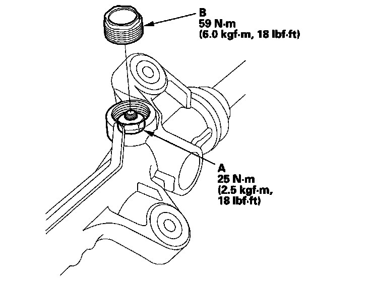 62. Coat the inside surface of the cylinder end (A) with power steering fluid, then install the cylinder end by screwing it into the cylinder (B). Tighten the cylinder end to the specified torque.