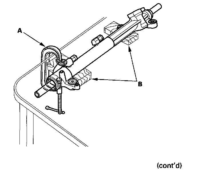2. Remove the boot bands (A) and tie-rod clips (B). Pull the boot away from the ends of the steering gearbox.